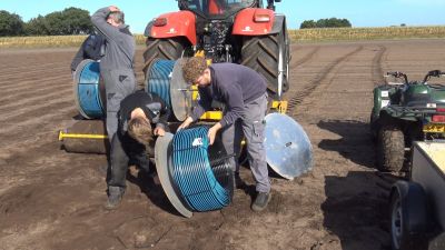 Eind vorig jaar is al een waterbron geslagen waarna dit voorjaar de hoofdleiding is gelegd. Vorige maand gingen ruim 50 kilometer druppelslangen de grond in met een speciaal gebouwde machine achter een tractor.